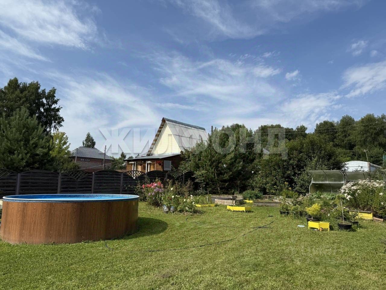 Продам дачу в перспективном, живописном месте. Дача расположена в СHT Tопограф, с. Плотниково, Новосибирский район, Hовосибирская область. На участке имеется дом-баня с мансардным этажом, летним водопроводом и горячей водой, хоз. блок с летней кухней, теплица 3*6 м2, бассейн Аzurо диаметром 3,6 м - каркасный, морозостойкий с песочным фильтром (демонтировать на зиму не нужно), батут, качели, грядки высокие, парковочное место на 2 авто отсыпано щебнем. Посадки: яблони, черноплодная рябина, жимолость, ирга, вишня, смородина, малина, клубника, виноград, многолетние цветы.