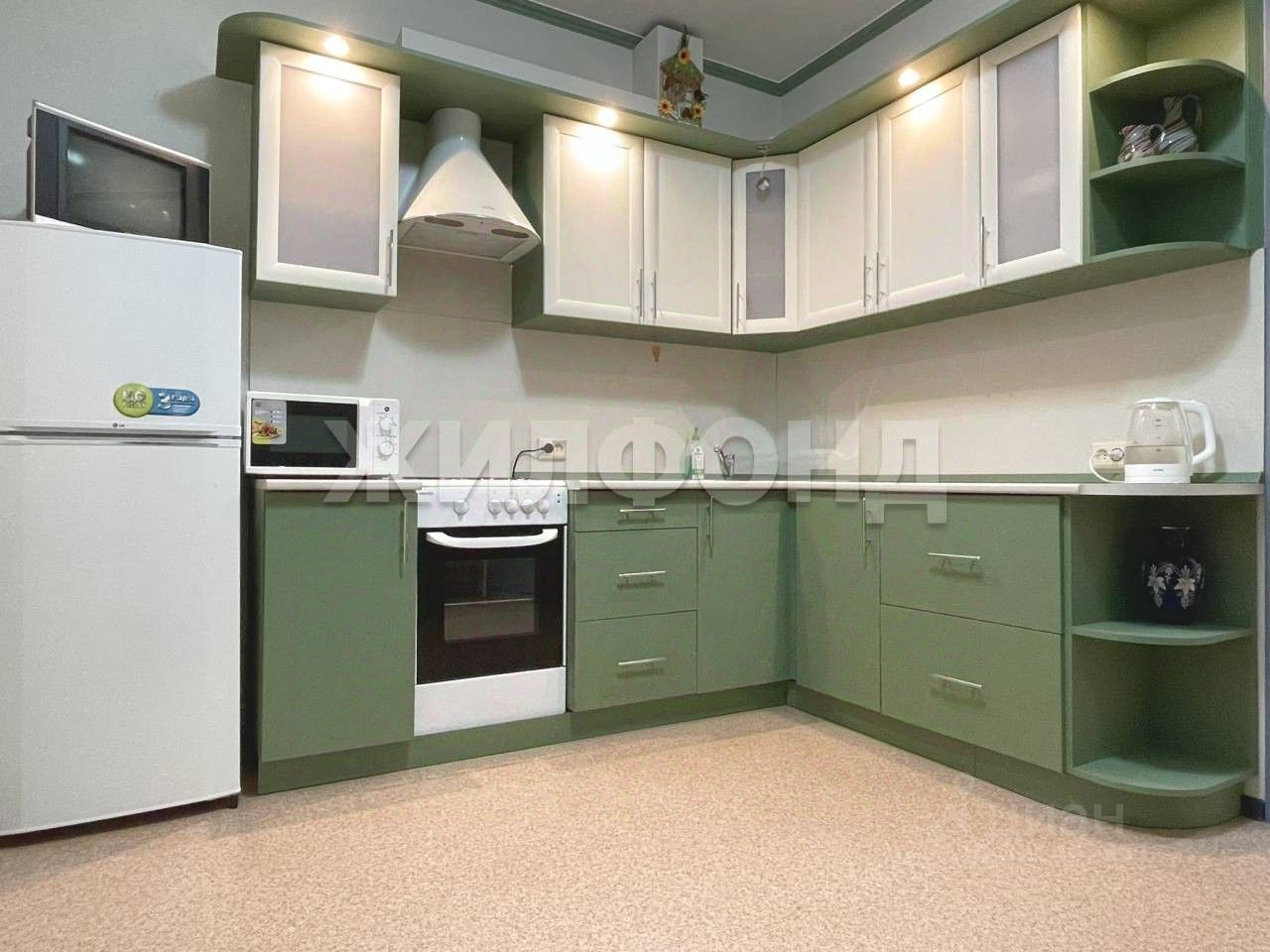 Есть вся основная мебель и бытовая техника.