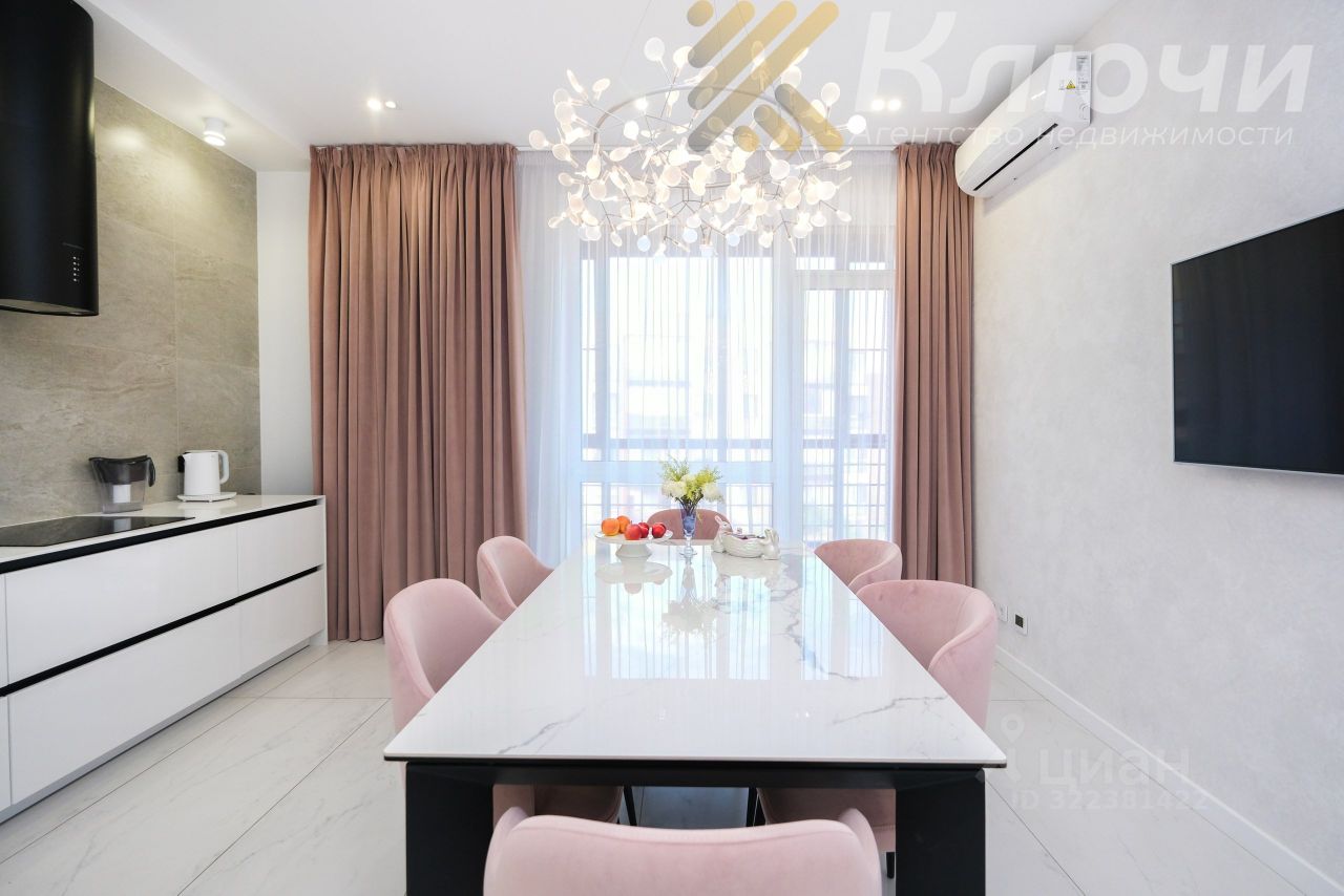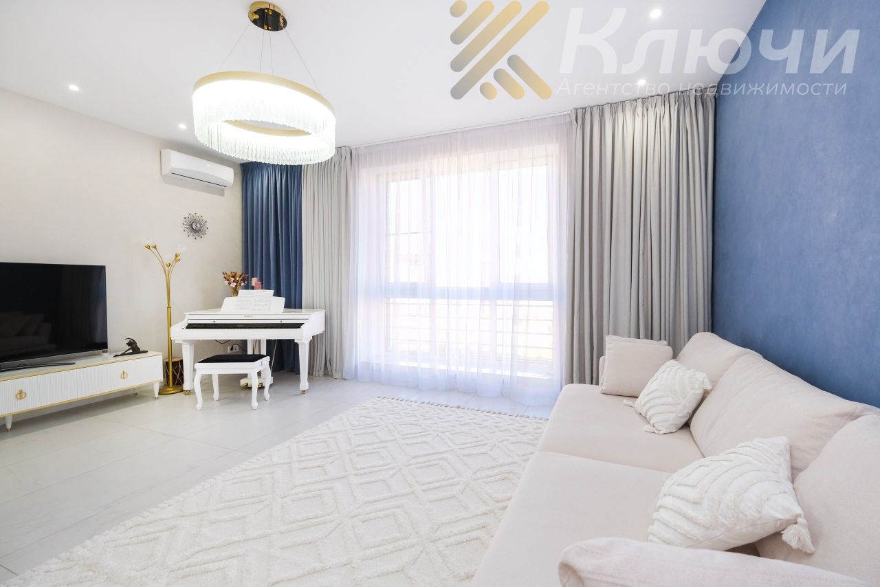 О квартире: — Площадь: 80.9 м² — Просторная гостиная с панорамными окнами и продуманной системой освещения — Стильная кухня с встроенной техникой и обеденной зоной — Уютная спальня в теплых тонах,на полу экологичная пробка — Санузел в керамограните, с качественной сантехникой — Потолки 2,8 м, выровненные стены, идеальные полы,керамогранит — Балкон с видом на зелёный двор