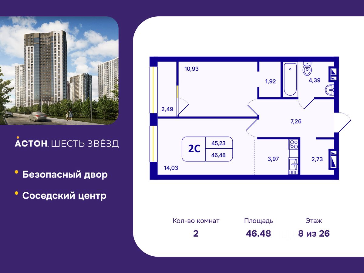''Астон.Шесть звезд'' - современный комплекс из 26-этажных домов класса ''комфорт плюс'' с уютными квартирами, вдохновляющими видами на левобережье, продуманной организацией жилого пространства, стильным дизайном общественных интерьеров и авторским благоустройством.