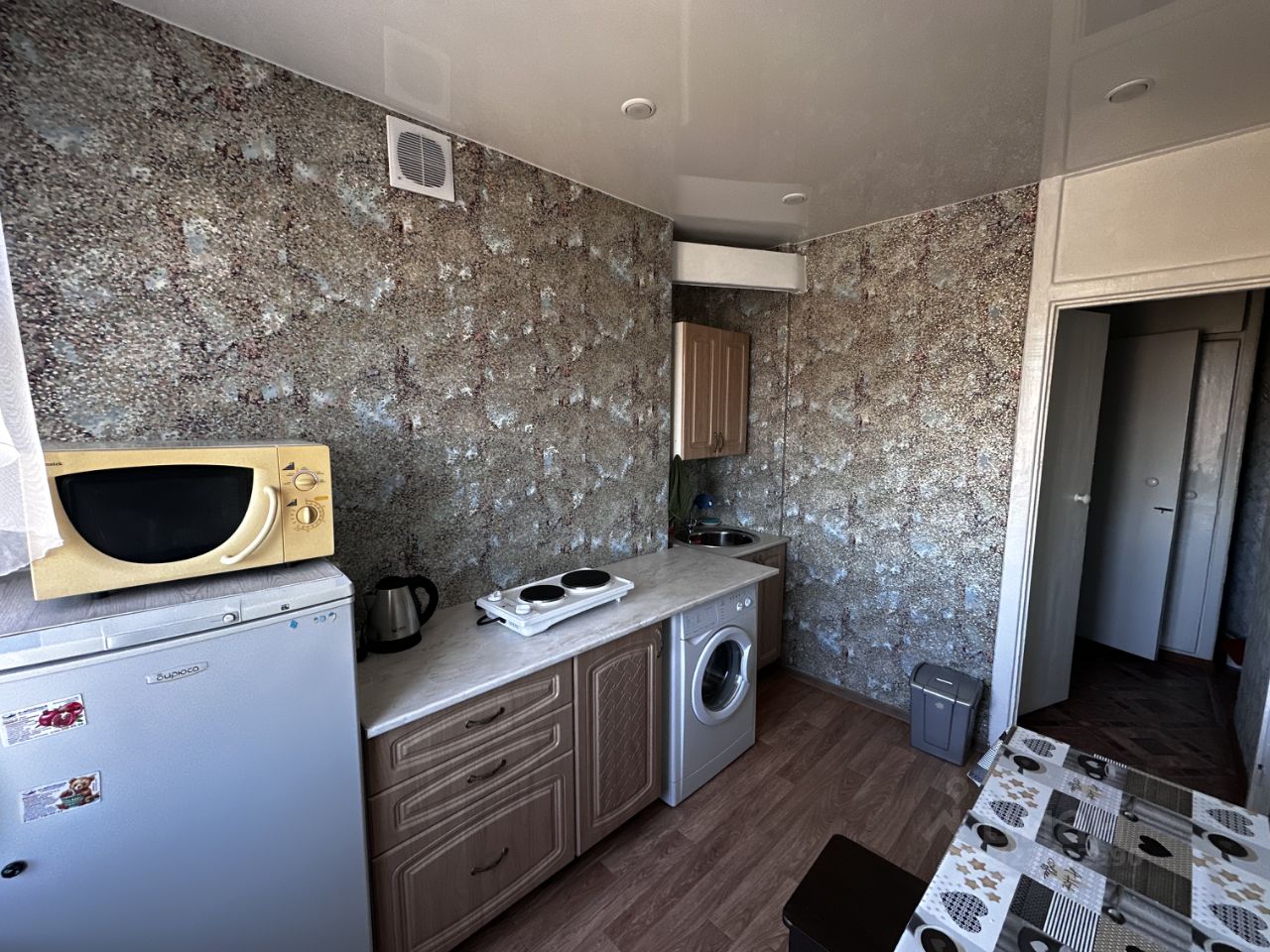 В квартире сделан косметический ремонт, что позволяет быстро заселиться и чувствовать себя комфортно. Потолки натяжные. В наличии вся необходимая техника: холодильник, телевизор, стиральная машина. На кухне и в комнате есть мебель, что делает проживание более удобным. Санузел раздельный, оборудован ванной. Также имеется лоджия, где можно наслаждаться свежим воздухом.