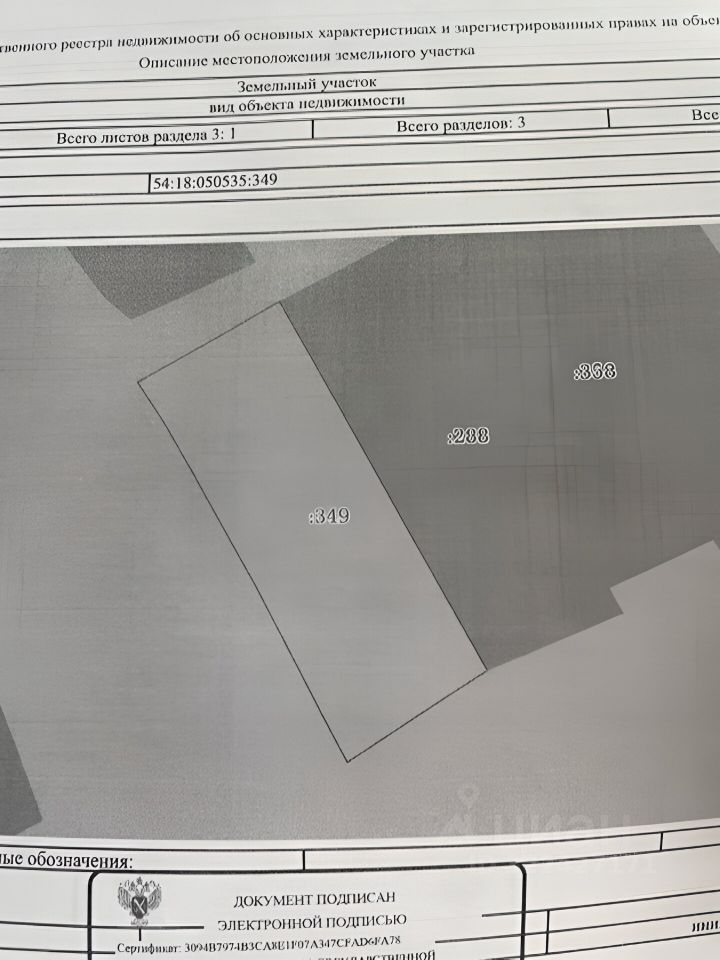 Кадастровый номер: 54:18:050535:349.