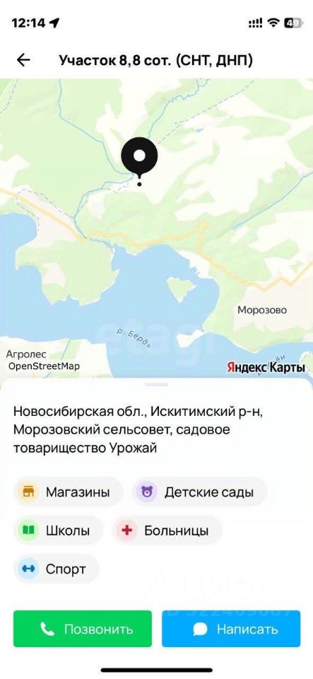 Продаётся земельный участок площадью 8,8 соток в СНТ Урожай!