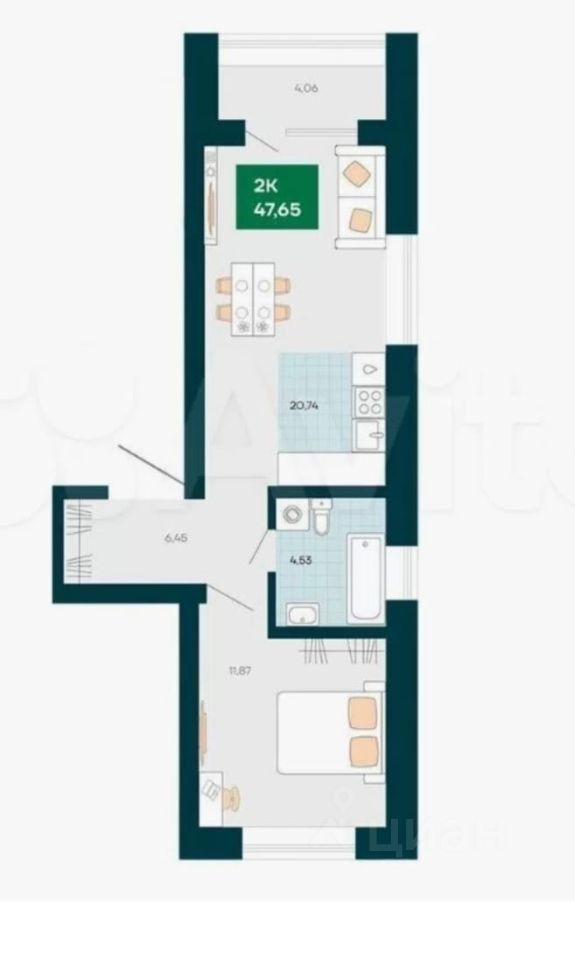 В квартире выполнен качественный евроремонт, что позволяет вам сразу переехать и наслаждаться комфортом. Просторная гостиная и уютная спальня помогут создать атмосферу уюта и тепла.