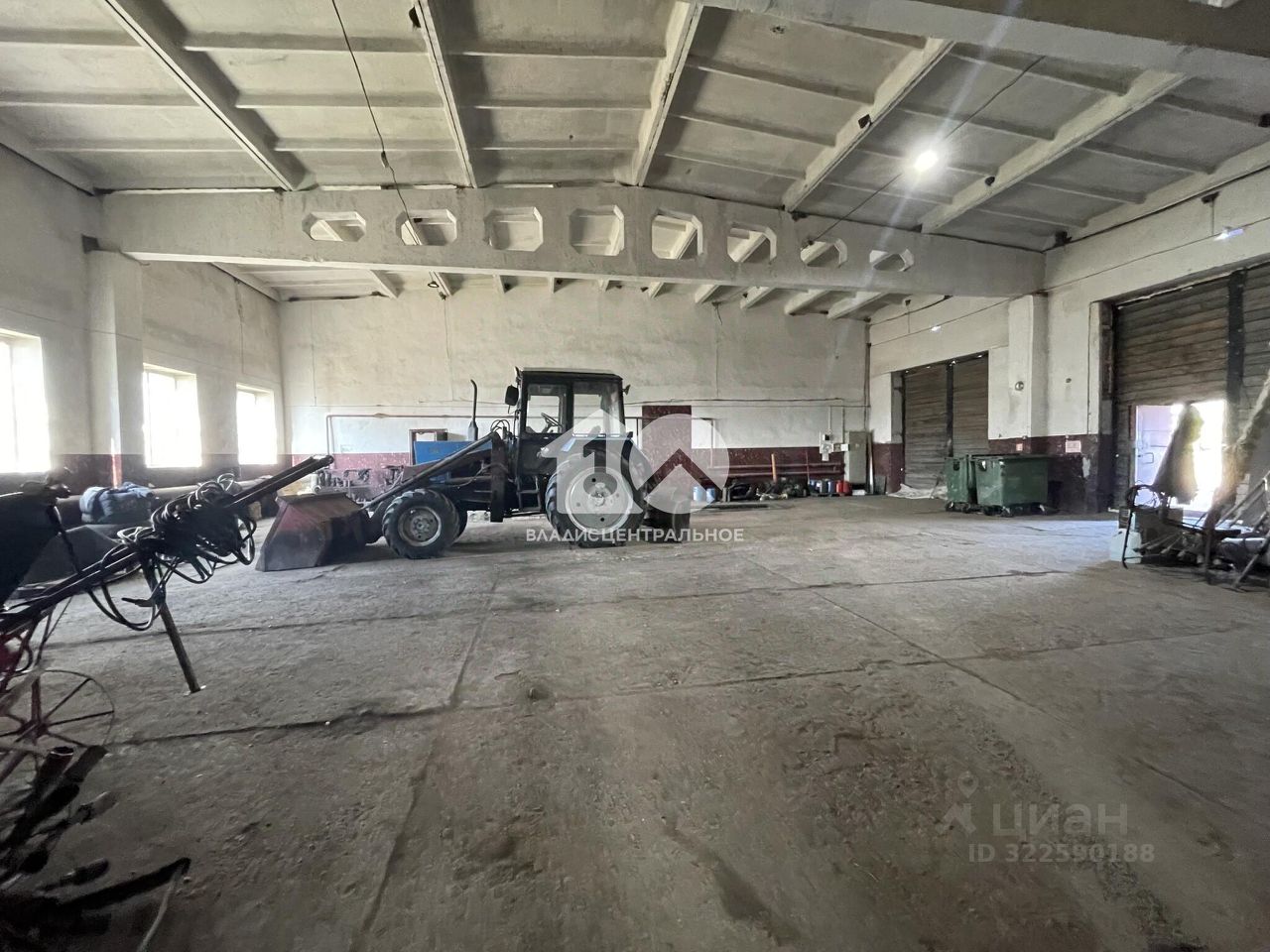 Постройки на участке: - Кирпичное двухэтажное здание общей площадью 1 209,1 м²: первый этаж — гаражные боксы, второй этаж — офисные помещения. - Металлический утепленный арочный ангар 900 м² с кран-балкой грузоподъемностью 5 тонн.