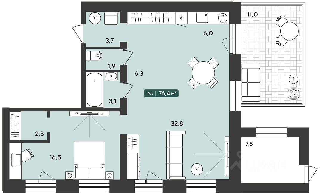 Общая площадь76,4 м2