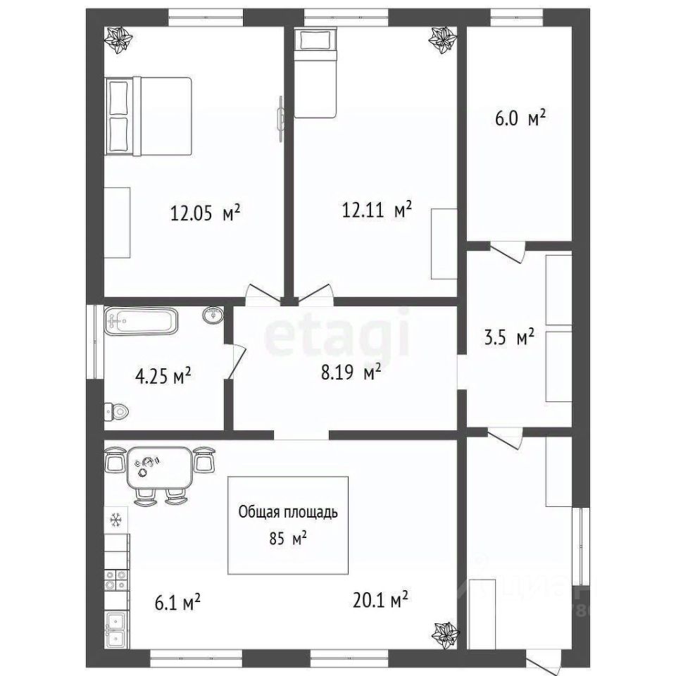 Общая площадь85 м2