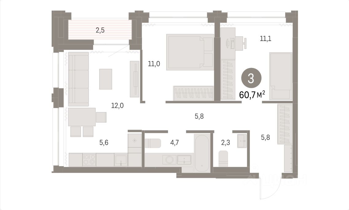 Уникальное предложение, в продаже 3-х комнатная квартира, в центре Новосибирска от одного из лучших застройщиков города. Комфортный 11 этаж, в шестой секции 17 этажного дома, с панорамным видом на запад. Планировка продумана до мелочей: кухня-гостиная 17,6 м2 с выходом на лоджию, две изолированные спальни, 2 больших санузла, вместительная прихожая. Квартира сдается с пред чистовой отделкой: стены выровнены и оштукатурены, пол залит песчано-цементной стяжкой. Дома возводятся по монолитно-кирпичной технологии, фасады выполнены из кирпича с штукатурными вставками. В проекте предусмотрены кладовые, подземный паркинг, система видео наблюдения, автоматизированный сбор показаний приборов учёта.