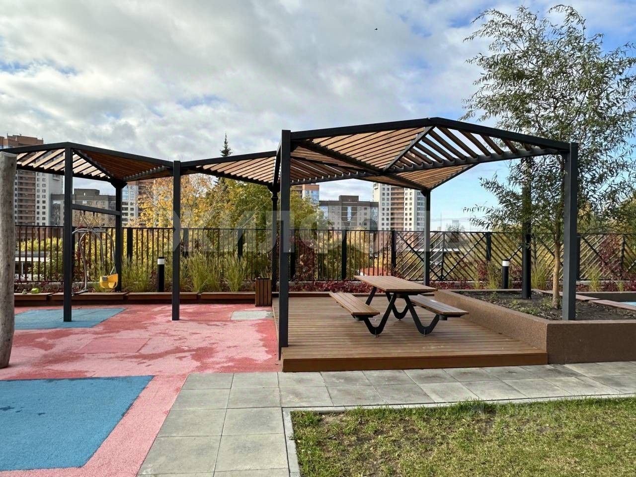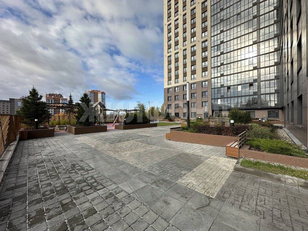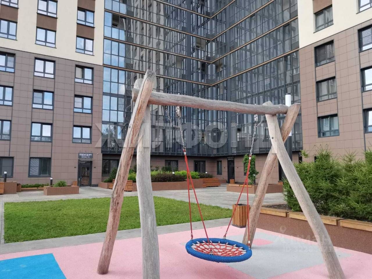 Придомовая территория огорожена и находится во внутреннем дворе дома, тем самым обеспечивая жильцам тихий двор без машин.