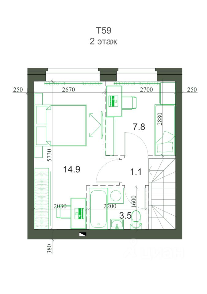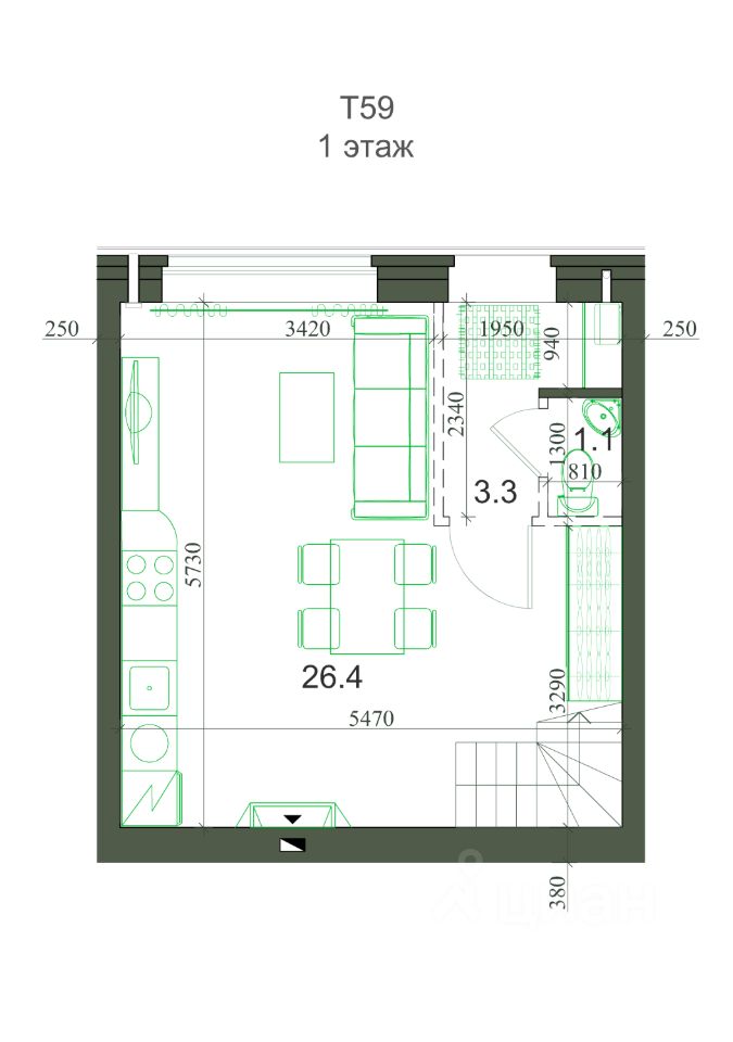 Общая площадь59 м2