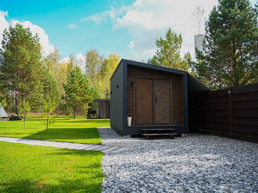 На участке расположены: - хозблок со стеллажами - беседка с подвесным креслом и диванами - мангальная зона, лаунж зона - участок весь огорожен