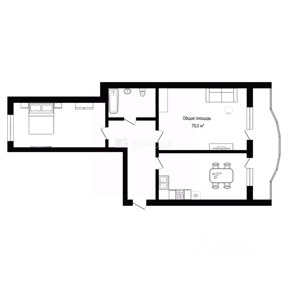 Квартира расположена на 5 этаже девятиэтажного монолитного дома, построенного в 2015 году. Общая площадь квартиры составляет 70 кв. м, из которых 47 кв. м — жилая площадь, а 20 кв. м — просторная кухня. В квартире выполнен евроремонт, комнаты изолированы, а окна выходят на улицу.