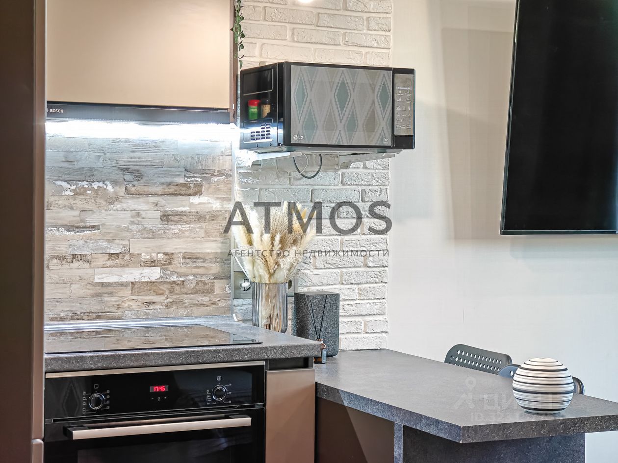 — кухня под заказ с качественной встроенной техникой Bosch (варочная панель, духовой шкаф, вытяжка) — холодильник, шкафы в комнате и коридоре — остаются — в комнате установлен кондиционер — нейтральные оттенки, современные материалы, всё выглядит свежо и дорого