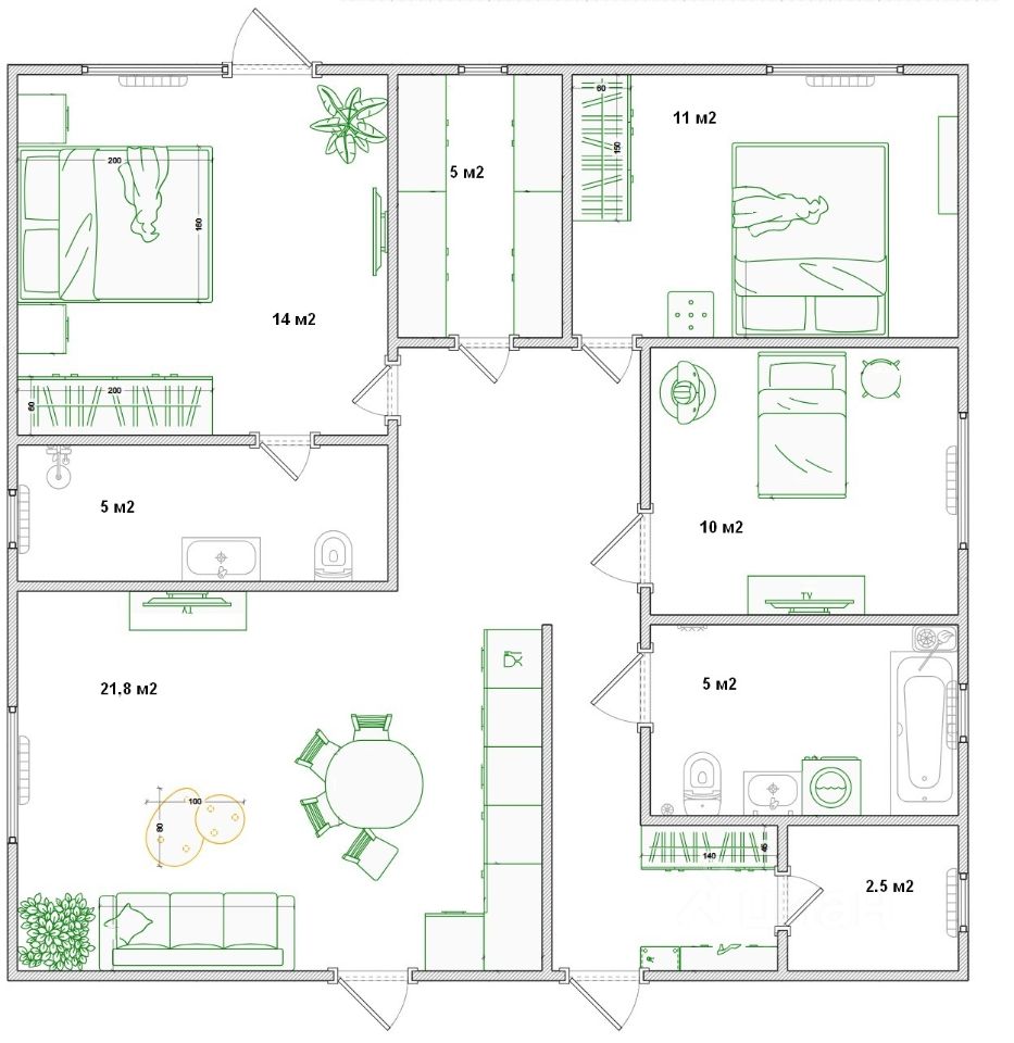 Общая площадь100 м2