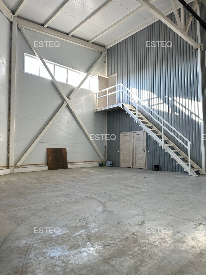 Технические характеристики: - Общая площадь 690 м2, из них: - 613 м2: склад - 77 м2: АБК - Одни ворота (высота 4,2 м, ширина 4 м), - Ворота на нулевой отметке, - Высота потолка 5,5 м, - Пол: ровный беспылевой, - Электрическая мощность: 20 кВт, - Температурный режим: +15/17 градусов, - Отопление: газовое, - Водоснабжение: центральное, - Канализация: септик 6 м3, - Санузел, офис, бытовка в складе, - Огороженная охраняемая территория, - Видеонаблюдение по периметру.