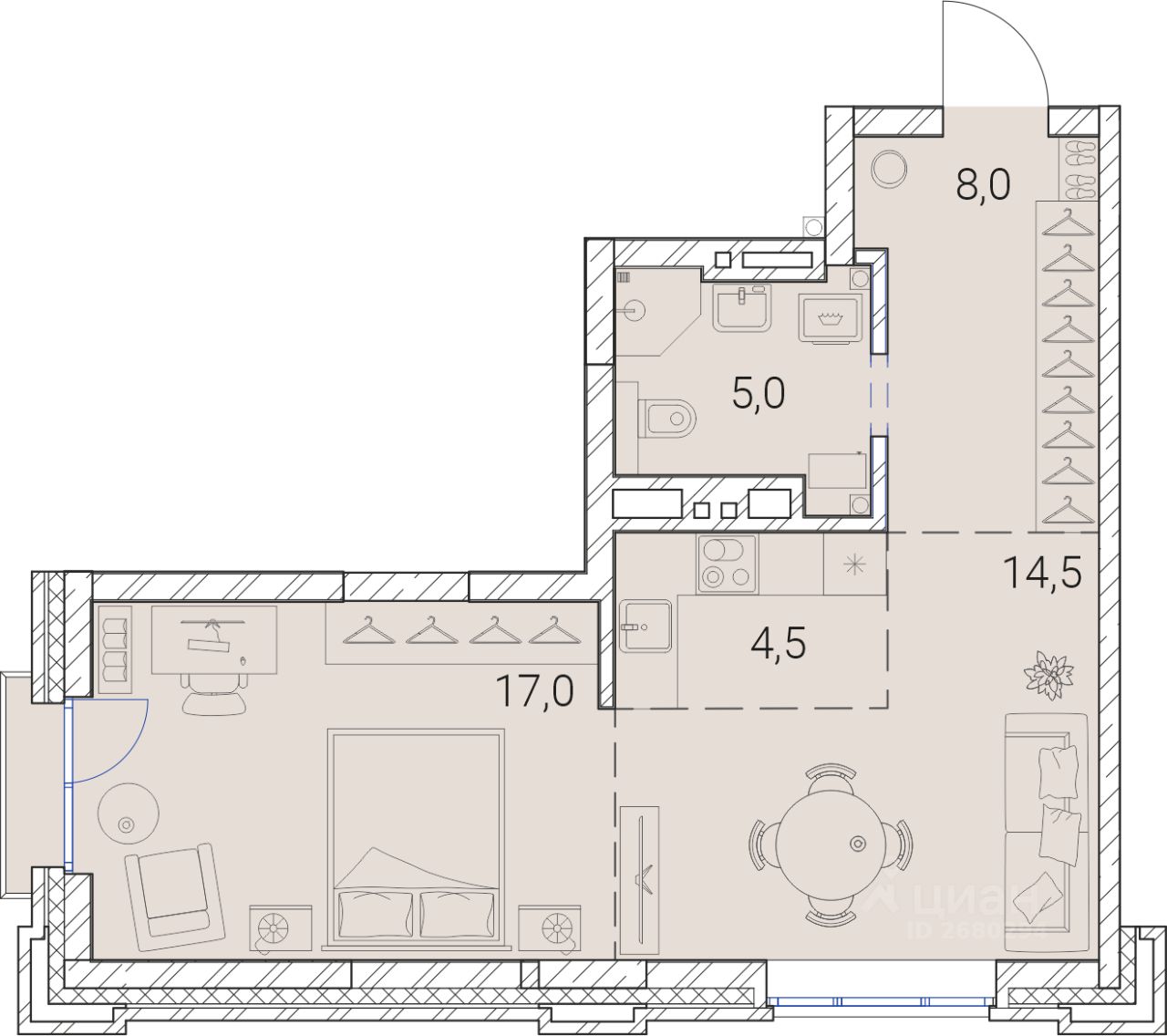Жилая площадь17 м2