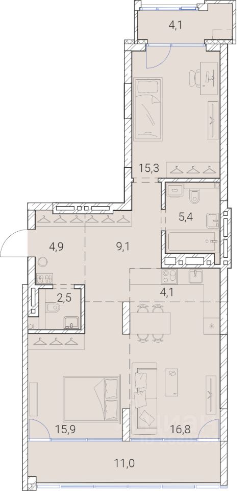 Общая площадь89,1 м2