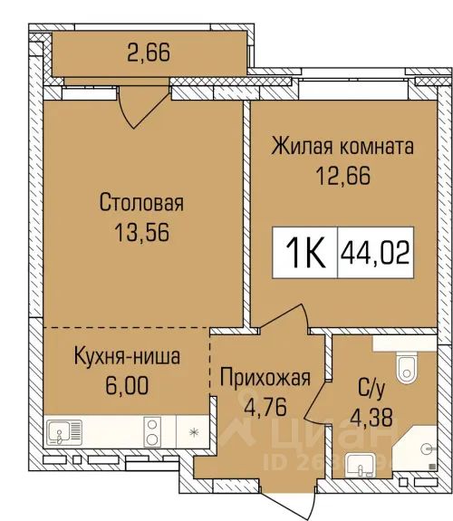 Общая площадь43,7 м2