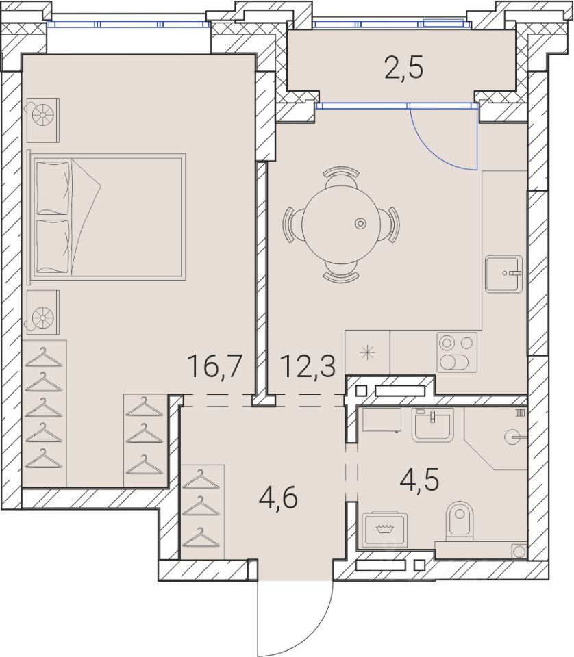 Жилая площадь16,7 м2