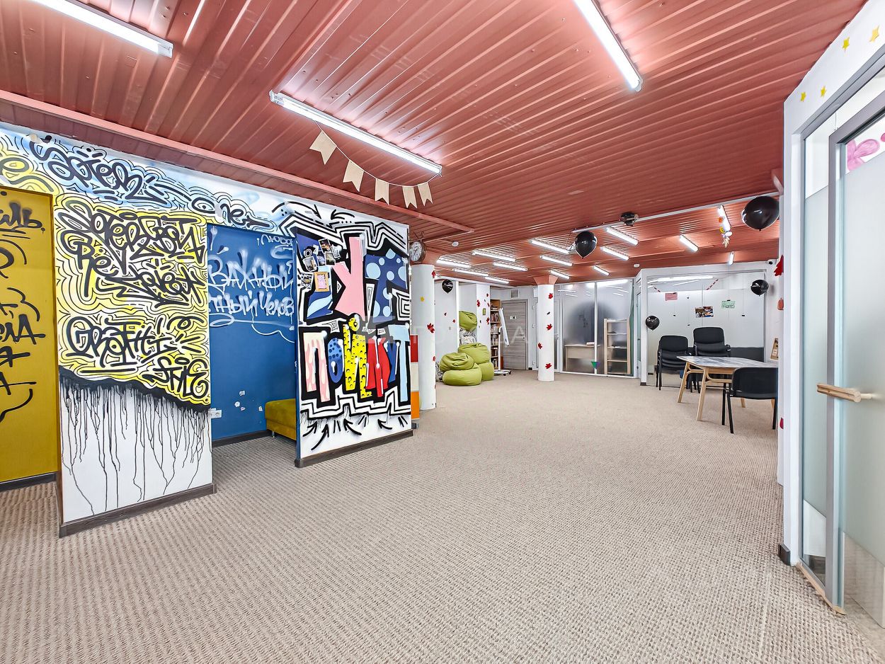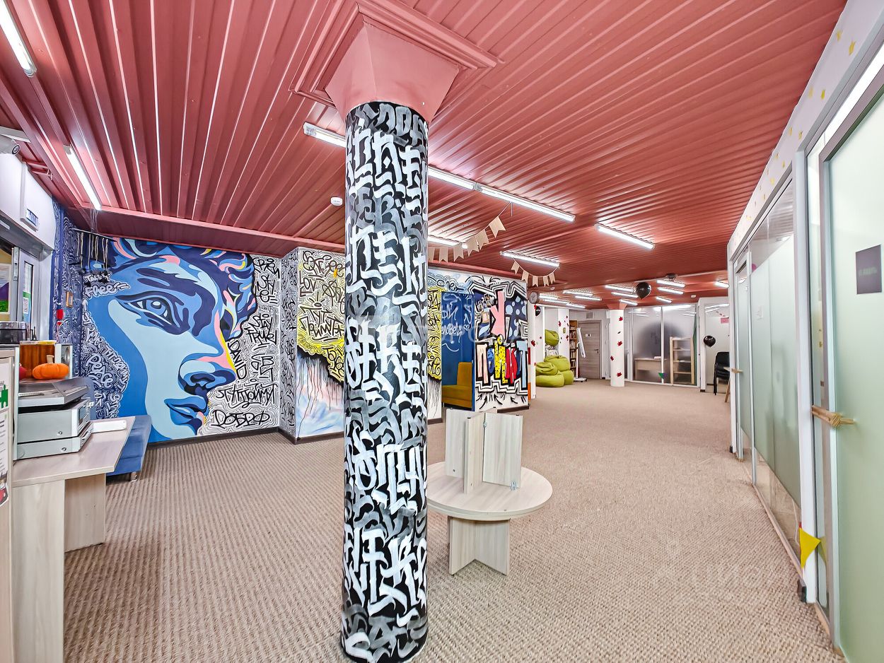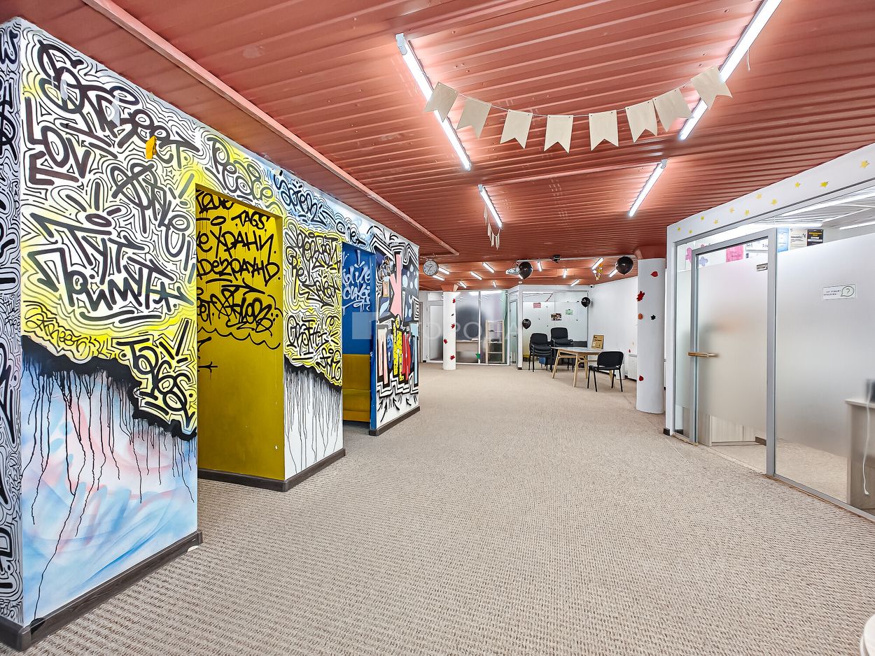 В помещении сделан ремонт в стиле лофт: оборудовано несколько мокрых точек, установлена приточно-вытяжная вентиляция, есть приточка и кондиционеры в 3х помещениях. Имеется 2 санузла, душевая, зона кухни, столовой и ресепшн, большой общий зал, отдельные кабинеты и хоз.помещения. Есть запасной выход