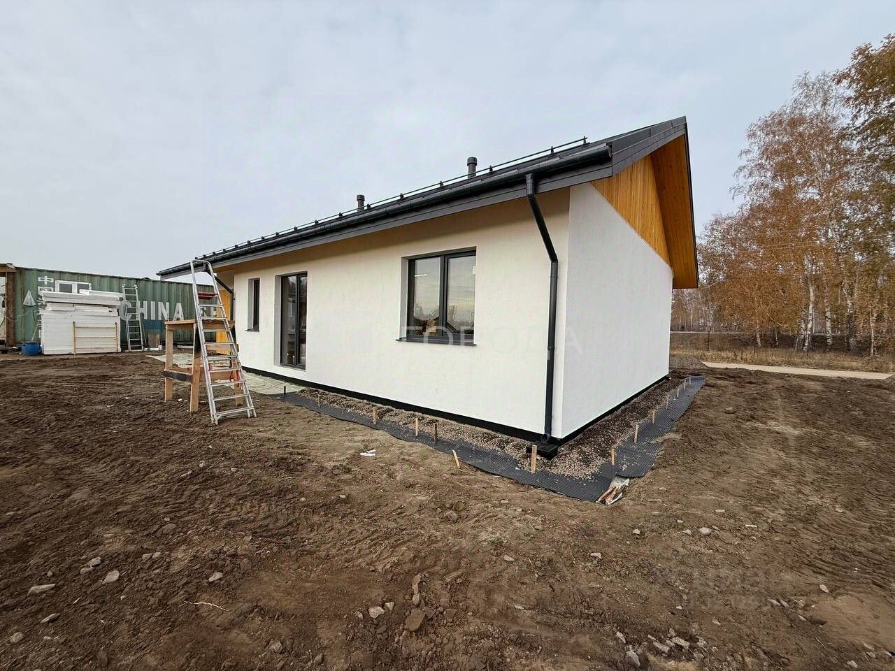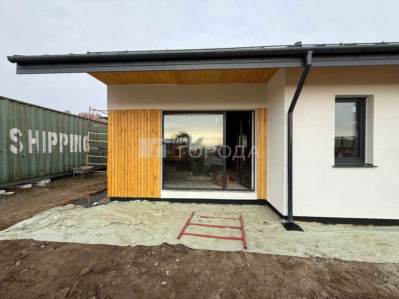 Фасад дома - декоративная штукатурка с элементами планкена.