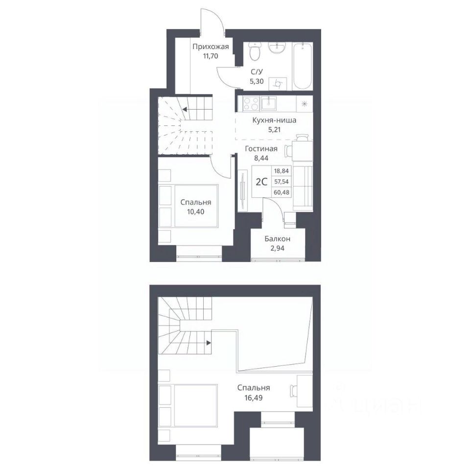 Общая площадь57,54 м2