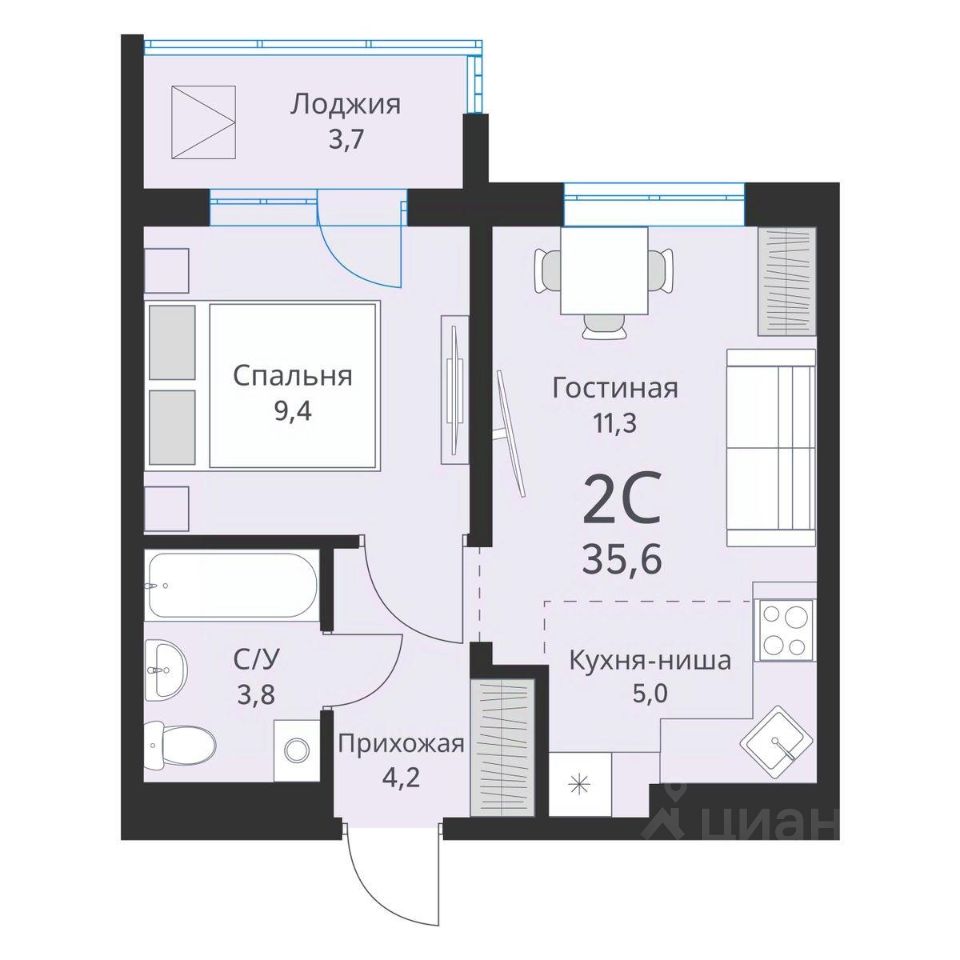 Общая площадь35,6 м2