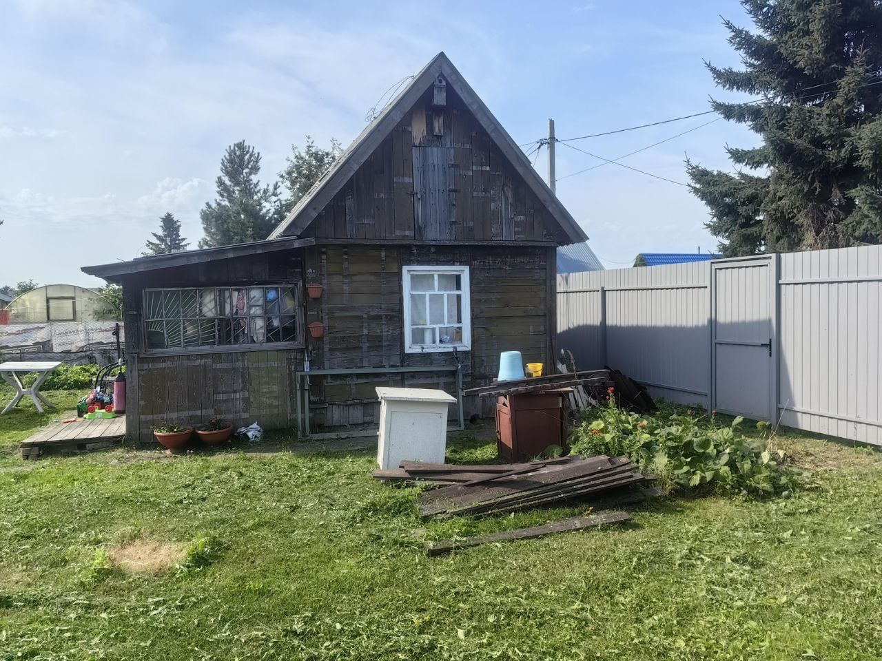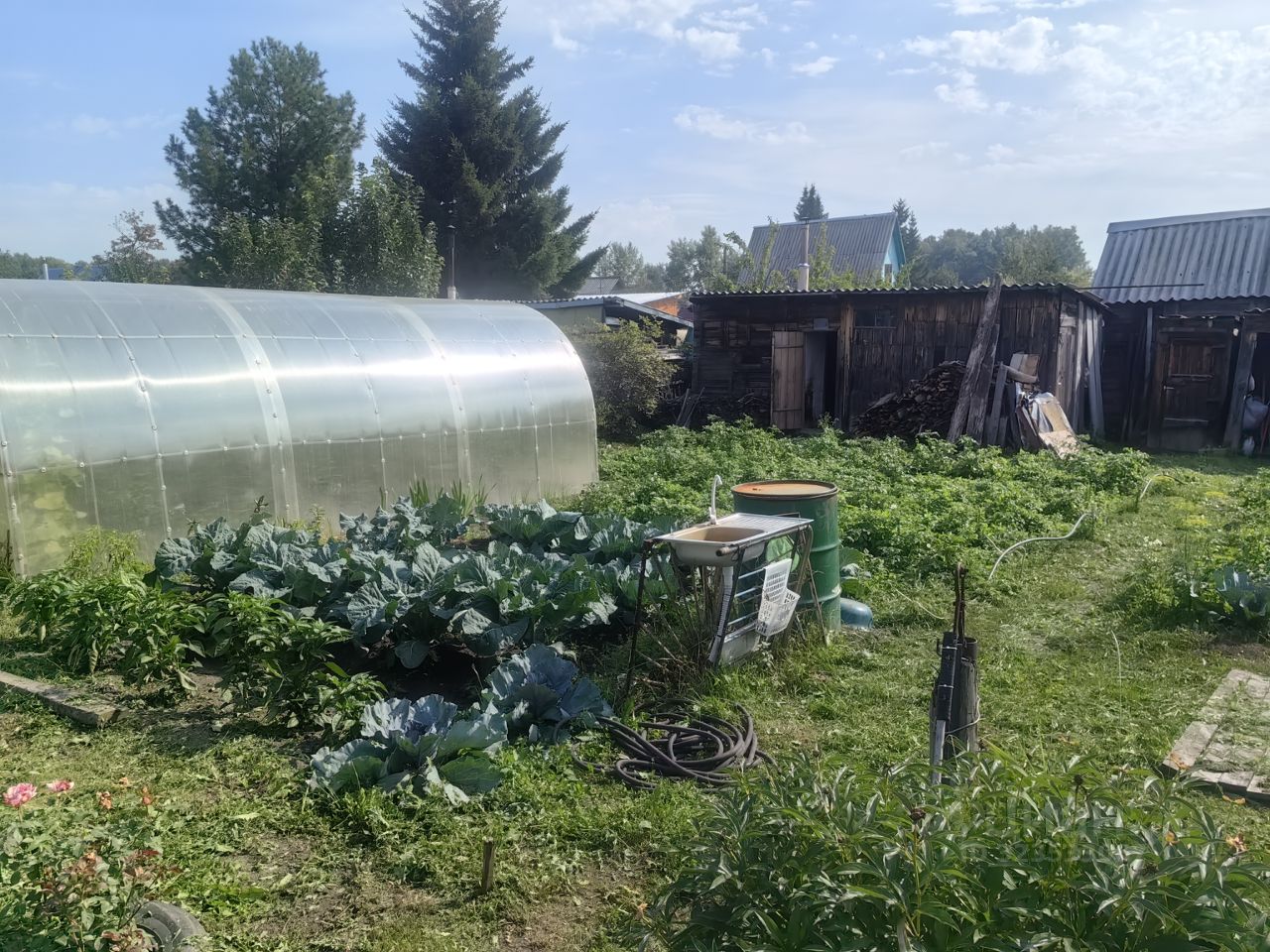 Отличный участок далеко от проезжей улицы (нет пыли). Новый забор, Большая теплица, баня, сараи, большой и малый (под снос). Подготовка под большую площадку для автомобиля, два куста жимолости разного сорта, большой и малый куст белой смородины, красная смородина и сладкая рябина. Небольшой домик, требует перестройки если нужно круглогодичное проживание или у вас большая семья. Есть постоянный интернет от Электронного города. Новый водопровод на участке, много фитингов для его продолжения и сама труба ПНД (20 метров). Большая качеля, сделана на заказ. Новый электрокультиватор, бензиновый триммер, хорошая алюминиевая лестница для проведения разных работ. Примерно 3 куб. метра бруса в сарае, много пиломатериала.