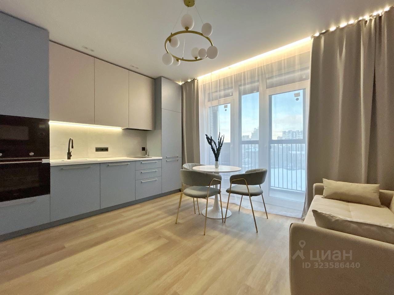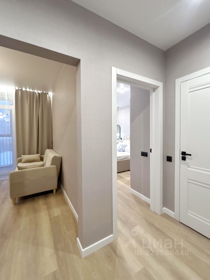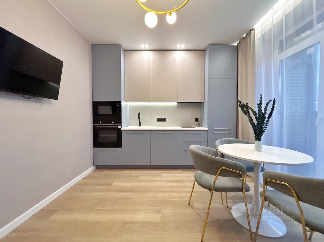 Современная планировка: кухня-гостиная, спальня, просторная прихожая. В квартире выполнен ремонт из высококачественных материалов.