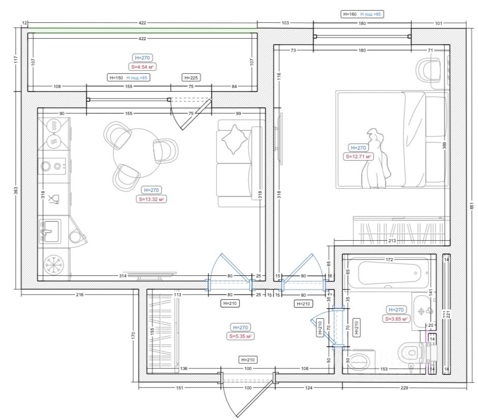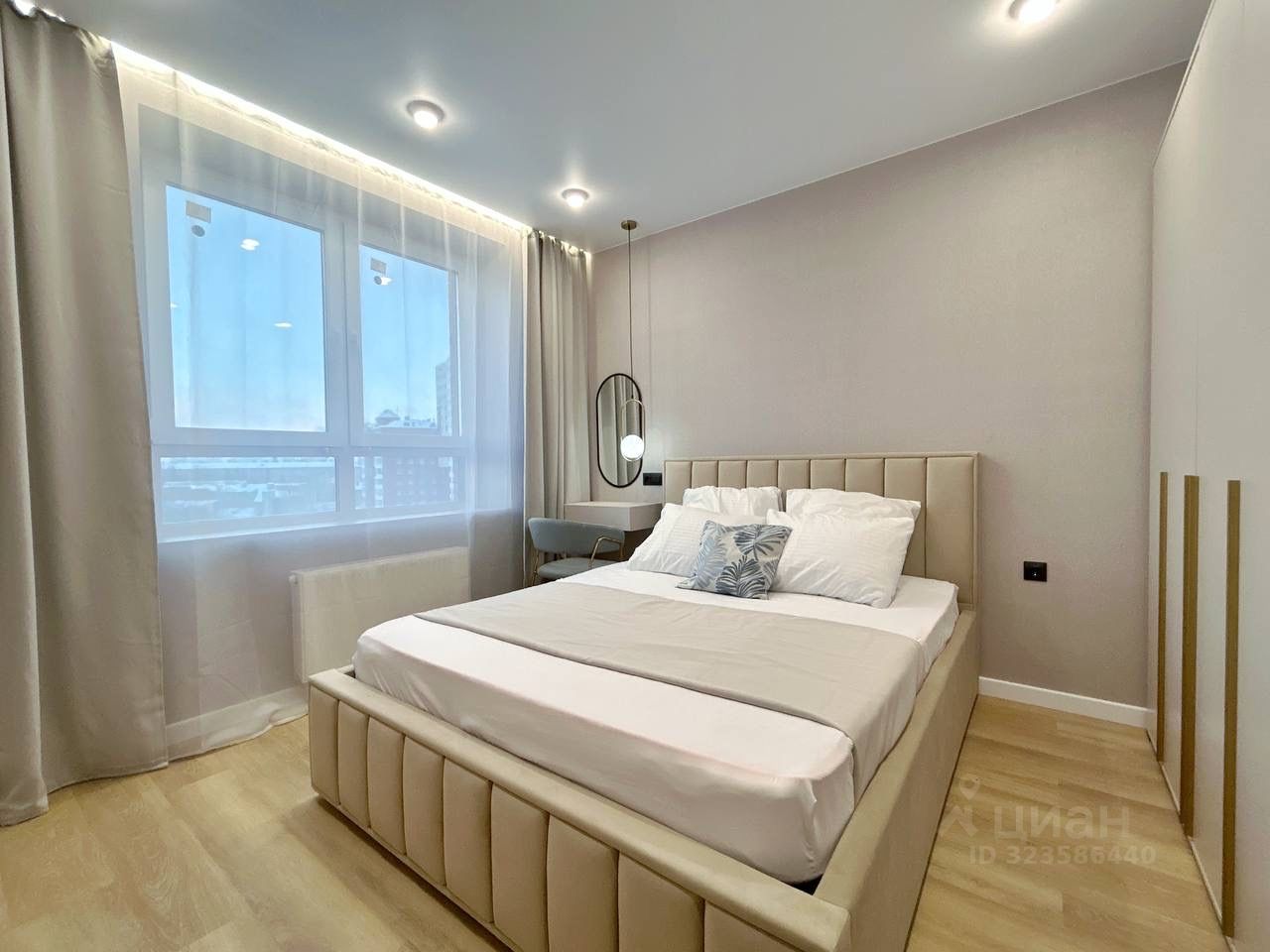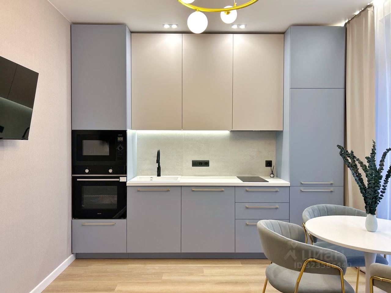 Современная планировка: кухня-гостиная, спальня, просторная прихожая. В квартире выполнен ремонт из высококачественных материалов.