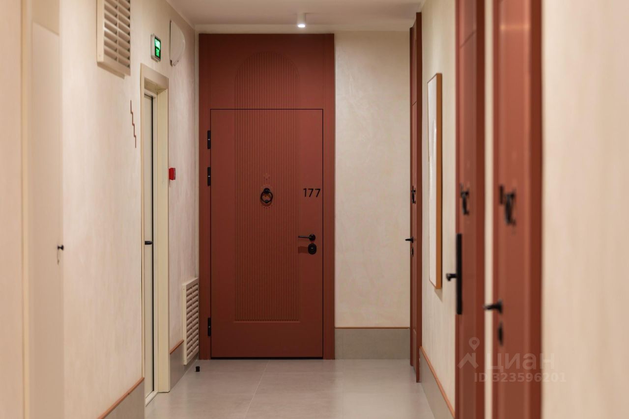 ОТКРЫТ ДЕМОЭАТАЖ Интерьеры всех этажей дома наполнены тонким дизайнерским вкусом. Натуральная фактура светлого керамогранита, изысканное сочетание сложных оттенков и мягкое освещение создают неповторимую атмосферу. Акцентом коридоров типового этажа стали высокие двери теплого лососевого цвета в матовом исполнении с арочными очертаниями и покрытием soft-touch, изготовленные по индивидуальному заказу. Благодаря двойному контуру уплотнения двери имеют высокий уровень шумопоглощения.