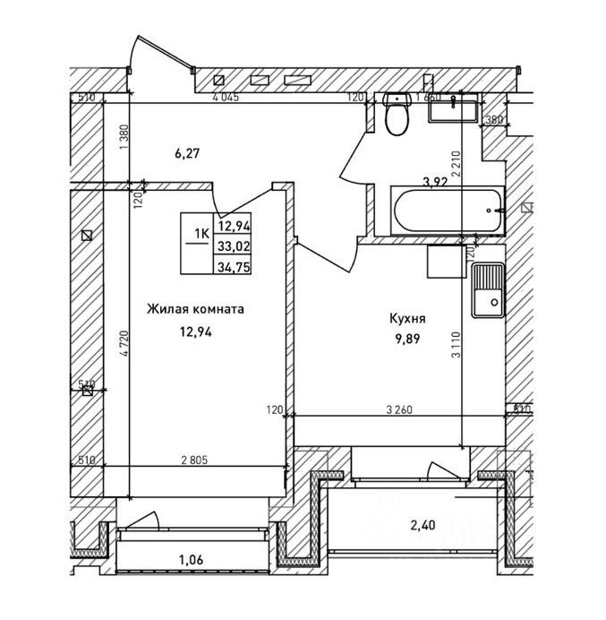 Планировка функциональная. Жилая комната 13м2 с балконом, кухня 10м2 с лоджией. В коридоре есть пространство, необходимое для мест хранения.