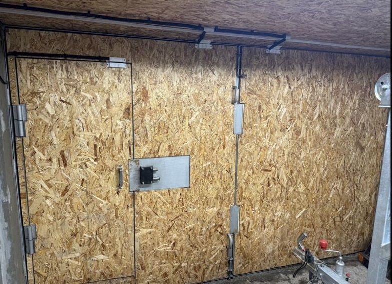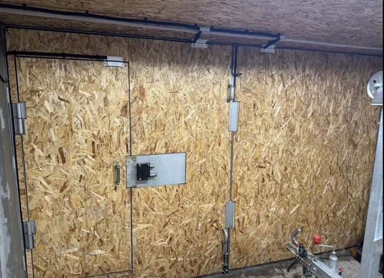 - Новые ворота, утепленные и обшиты OSB.