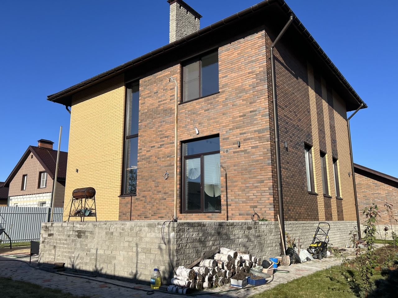 А теперь подробнее *Коттедж площадью 306 м2: 4 комнаты, 2 просторные ванные комнаты на первом и втором этажах, просторная кухня-гостиная оборудована современной кухней с профессиональной техникой и в зоне отдыха расположен действующий камин (на дровах), выход на открытую террасу с кухни-гостиной, отдельная прачечная совмещена с котельной комнатой с газовым оборудованием (32 кВт) и резервным электрическим котлом.