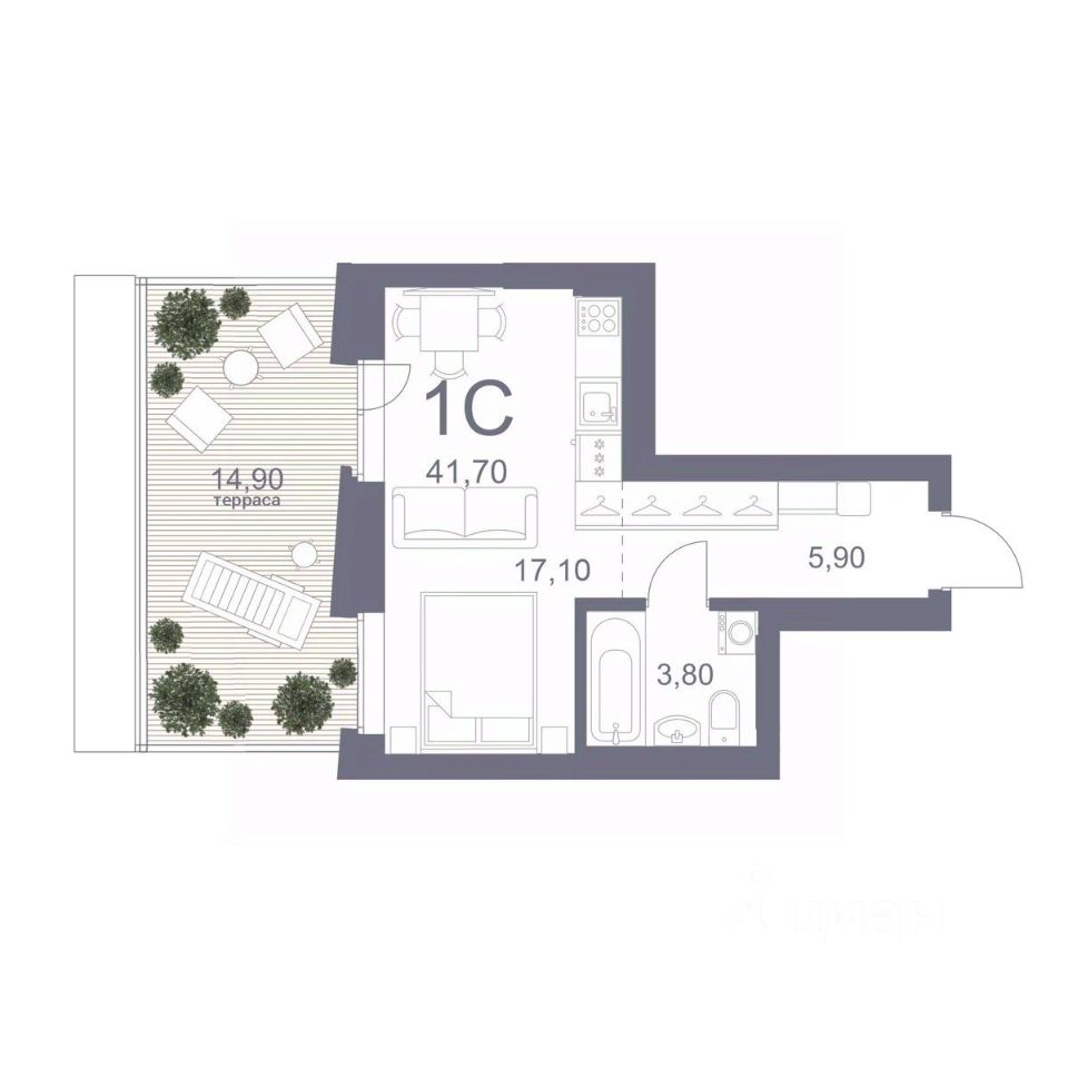 Общая площадь41,7 м2