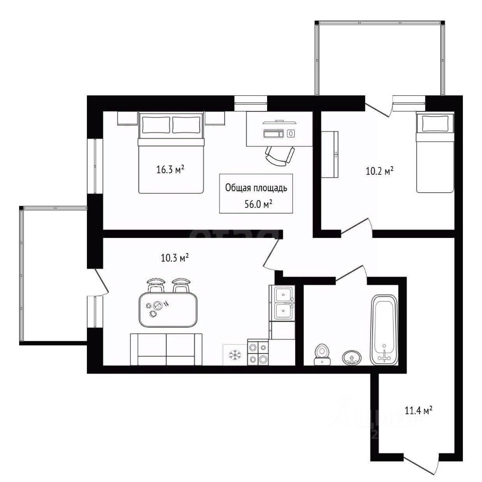 Квартира имеет отличную планировку, включающую в себя просторную кухню-гостиную, уютную спальню, большую комнату с двумя окнами, а также отдельно выделенное место под гардеробную в коридоре и 2 просторных лоджии с прекрасным видом на площадку и город. Квартира полностью укомплектована мебелью и техникой. . В квартие увеличенные оконные проёмы, установлены двухкамерные стеклопакеты, предусмотрена защита от детей. Приточно-вытяжная вентиляция обеспечивает постоянное обновление свежего воздуха в квартирах.