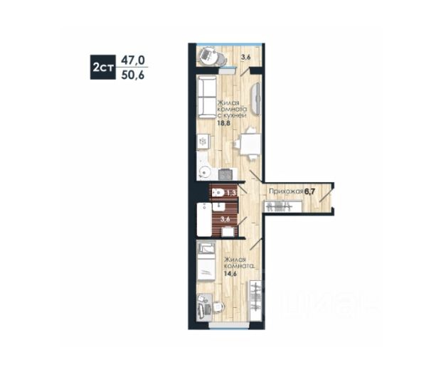 Площадь указана без учета лоджии.
