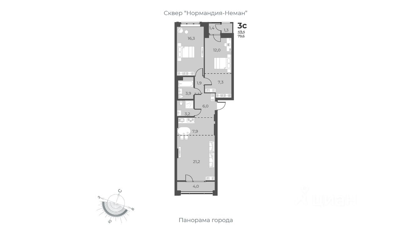 продам 3-к, Аэропорт, 4910 600 000 ₽