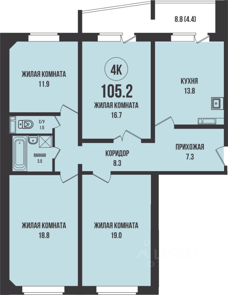 Общая площадь105,2 м2