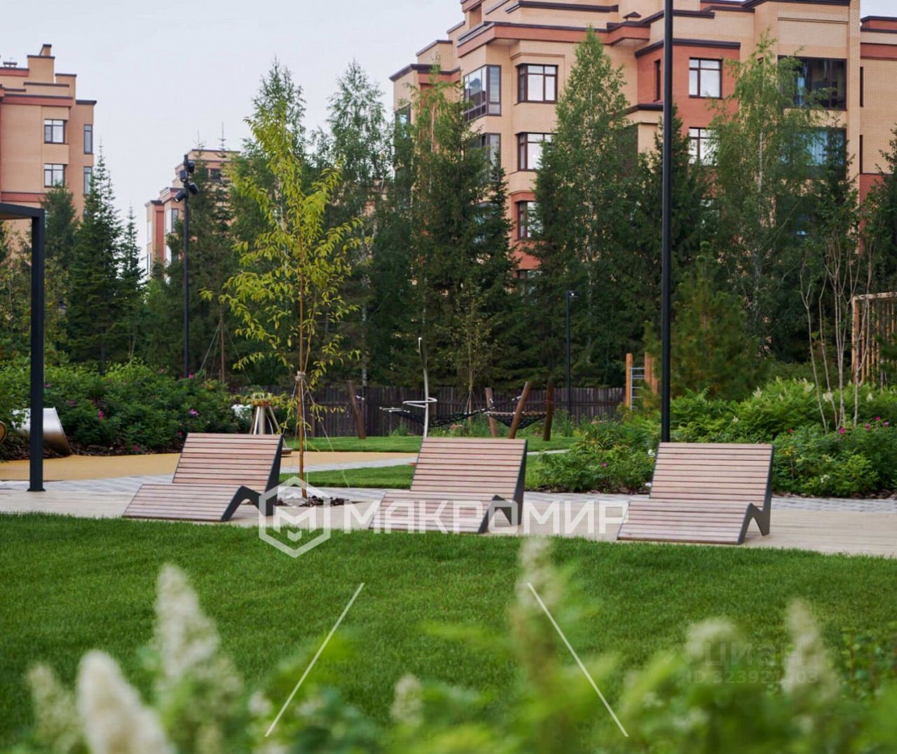 На территории квартала уникальный ландшафтный дизайн от европейского архитектурного бюро - приватный двор-парк с разнообразной флорой с графиком цветения от ранней весны, до поздней осени, - трехарочная колоннада с пешеходным фонтаном, - стильные лаунж-зоны и work-out зоны, - современный двухэтажных эко-комплекс для детей с батутом, скалодромом и веревочным парком.