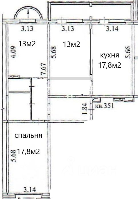 Площадь указана по ЕГРН, без учета 2 лоджий