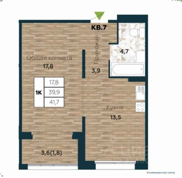 продам 1-к, Николая Островского, 1956 700 000 ₽