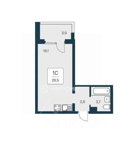 В продаже квартира - студия в новом жилом комплексе Сосновый бор.