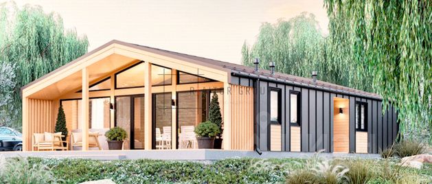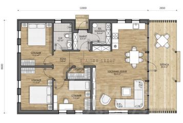 Арт. 125955357 Готовый проект дома — 2 спальни, кухня-столовая, терраса.