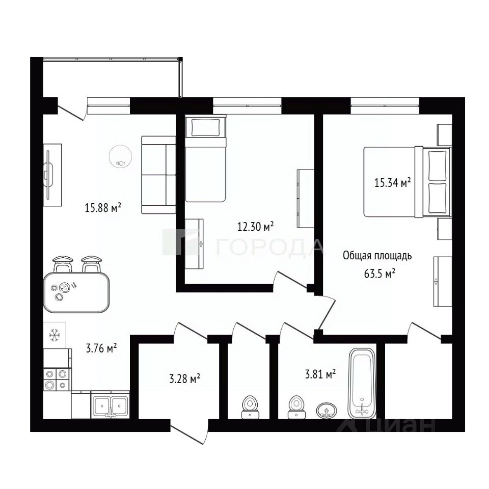 продам 2-к, Ясный Берег, 438 700 000 ₽