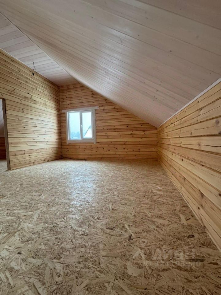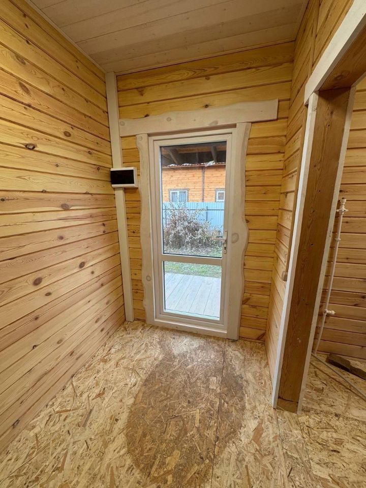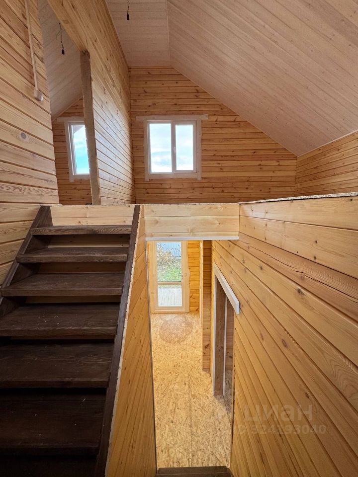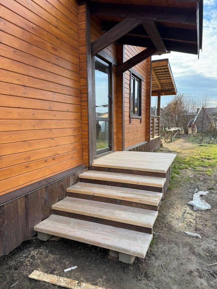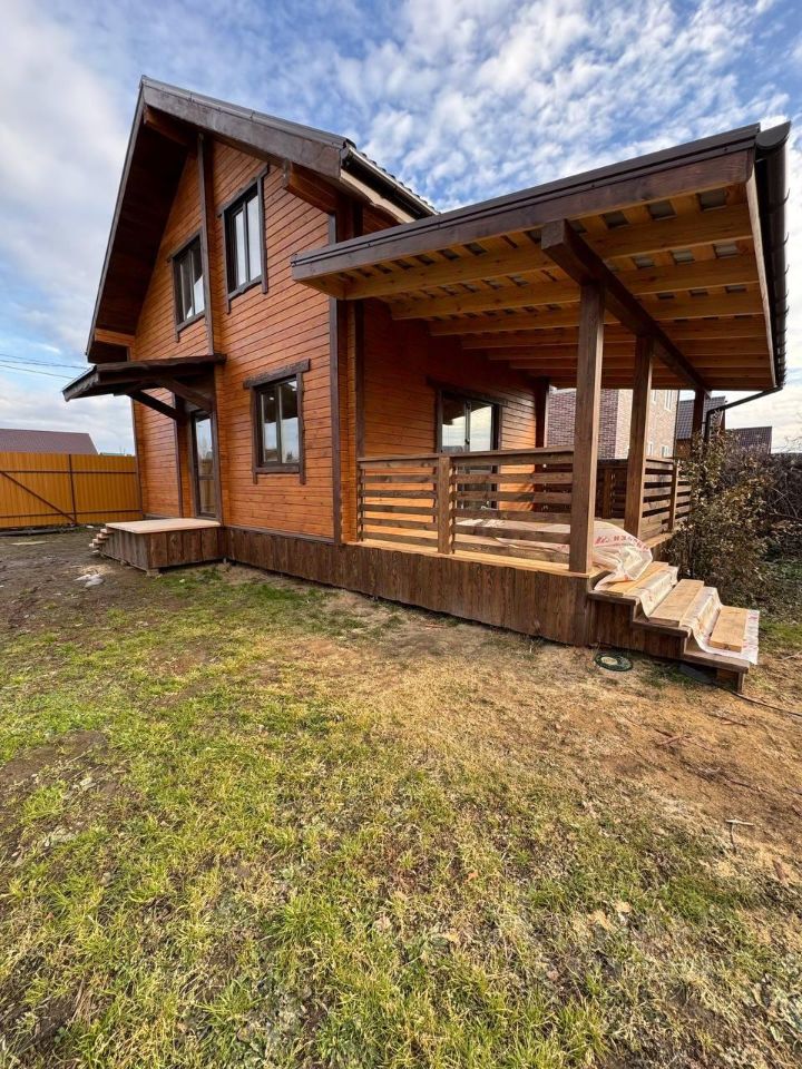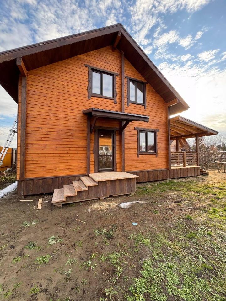 Экологически чистый материал: брус гарантирует здоровую атмосферу и приятный микроклимат круглый год. Отделка потолков вагонкой. Высота потолков 2.7м на 1 этаже, 4м на 2 этаже. Стены внутри и снаружи дома отшлифованы и окрашены краской. Удобная планировка: первый этаж оснащен просторной кухней-гостиной с панорамным остеклением и выходом на террасу, спальней, санузлом и хозяйственным помещением. Дополнительные удобства: второй этаж с двумя спальными комнатами свободной планировки. Просторный участок: ровный рельеф, имеются плодово-ягодные насаждения.