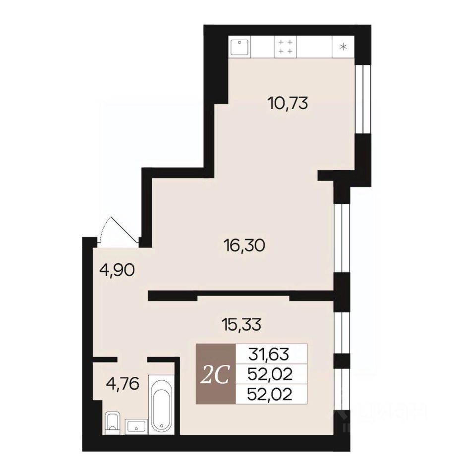 Общая площадь52,02 м2