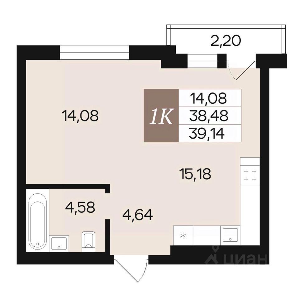 Общая площадь39,14 м2