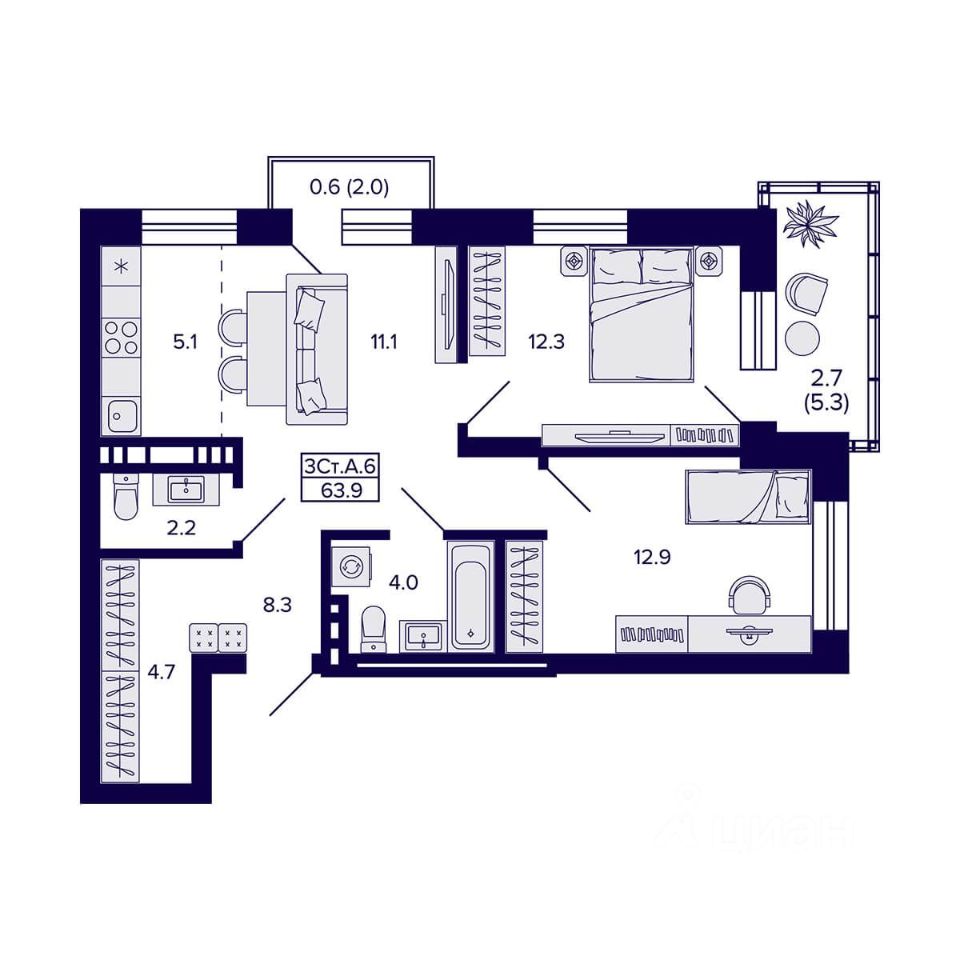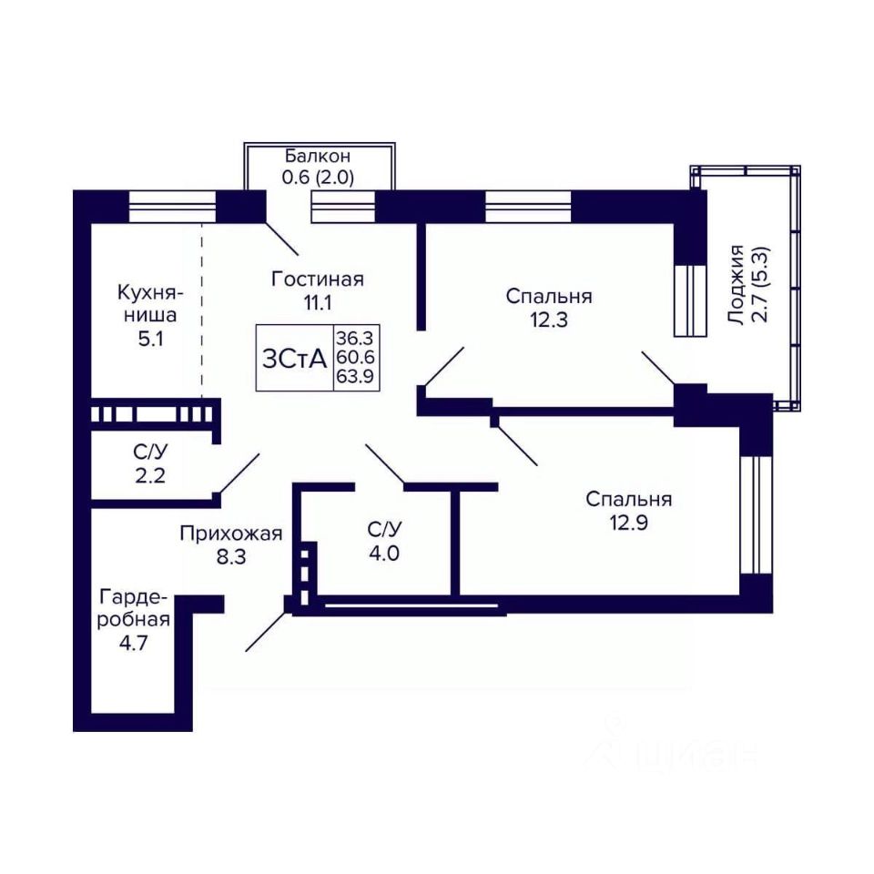 Общая площадь63,9 м2