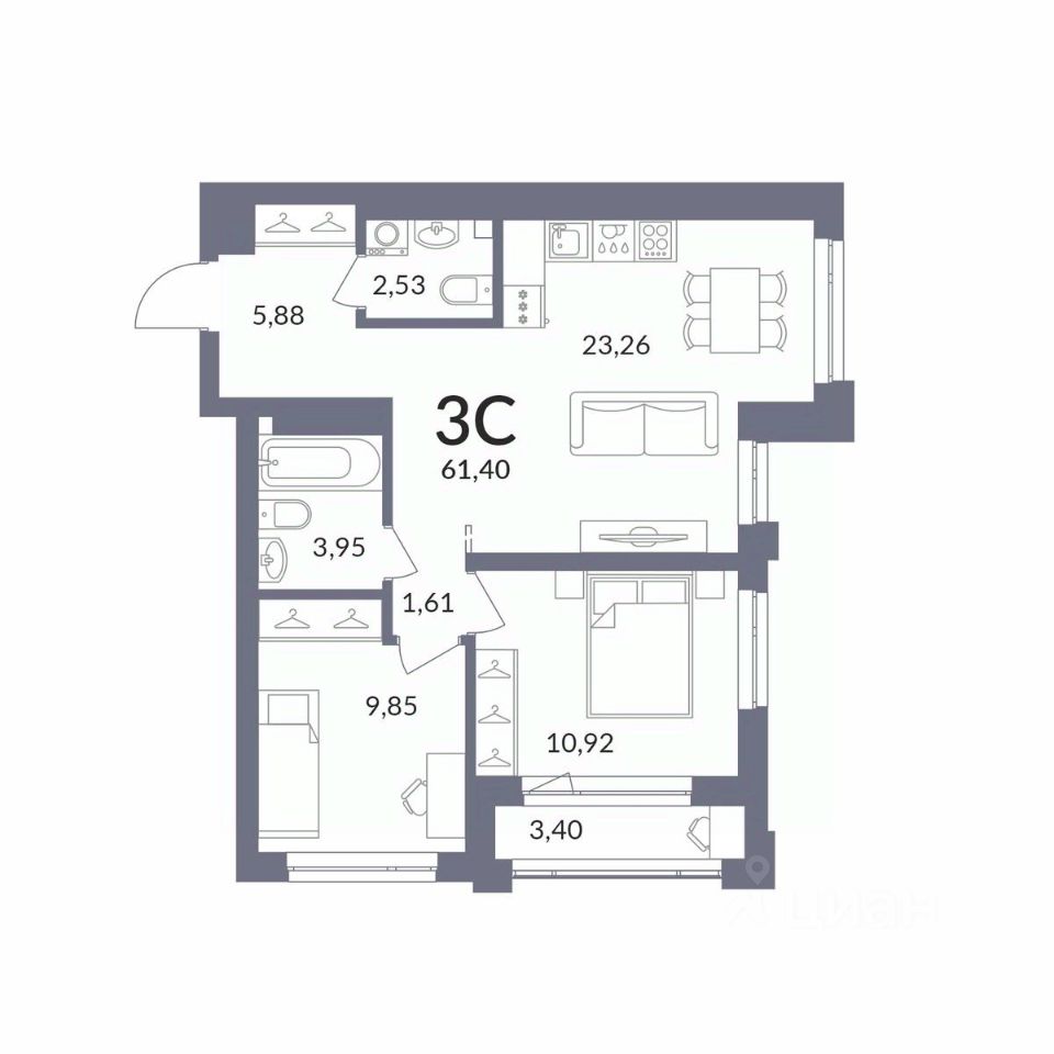 Общая площадь59,7 м2
